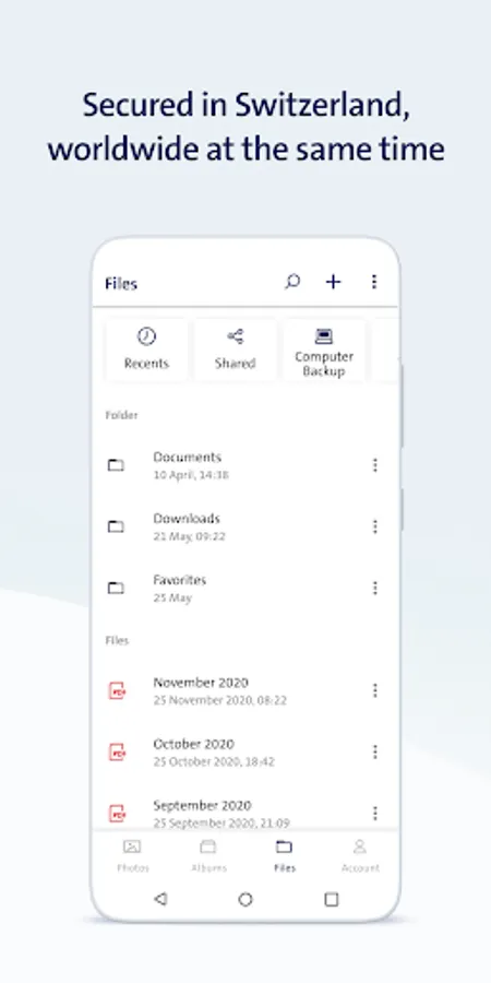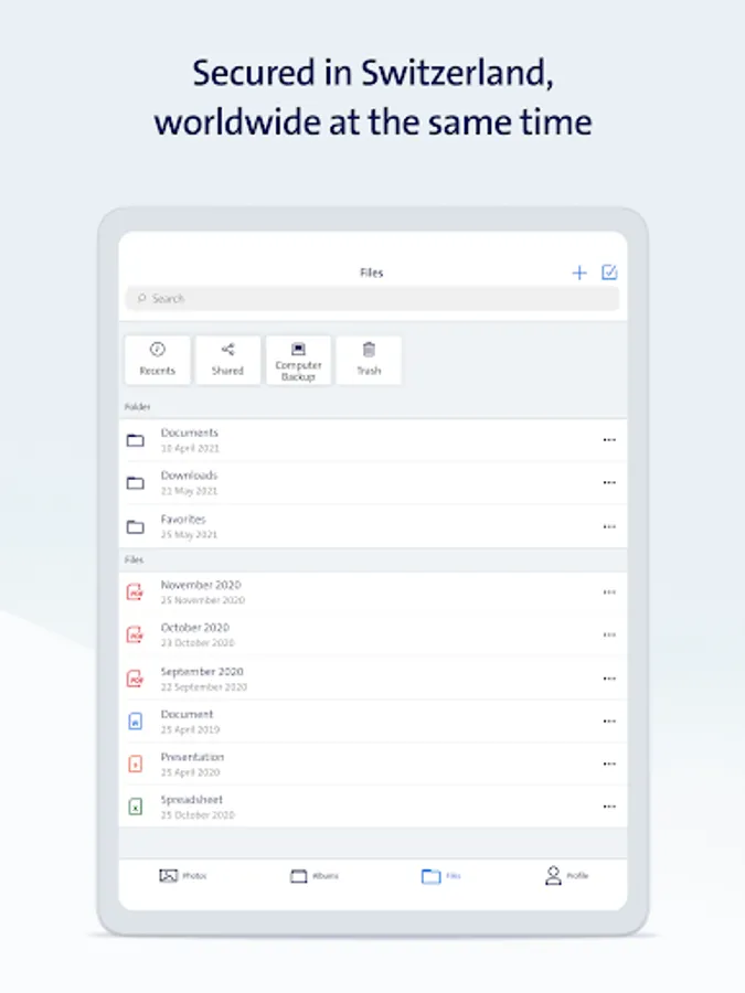 All files stored in Switzerland: Your files are stored only at locations in Switzerland.