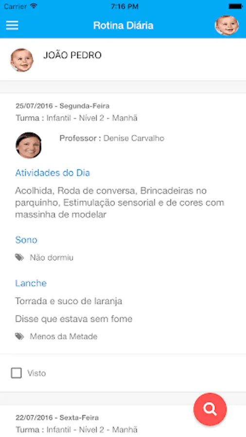 Without the use of the traditional paper diary, Teachers post students' information through any mobile device with internet access: Messages, Daily Routine, Collective and individual events, among others.