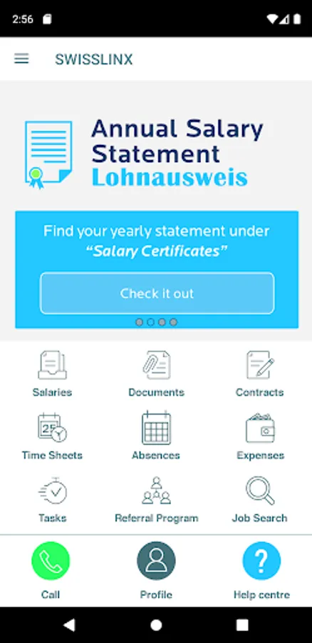 The Swisslinx platform offers convenient functionalities as access to documents, useful information and job search.