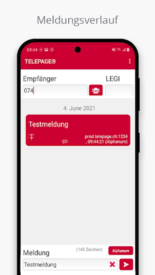 With the TELEPAGE® app for Android devices, you can send messages to TELEPAGE® easily, quickly and conveniently from your smartphone. Please note that valid authentication is required to use the app. You can get this from the TELEPAGE® provider via email cc@swissphone.com.