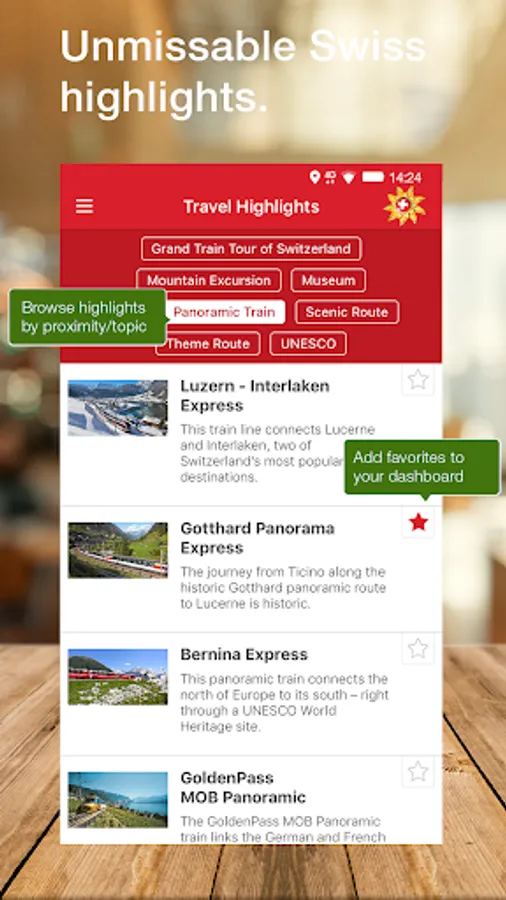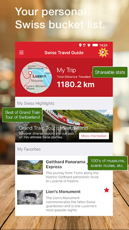 The Swiss Travel Guide app is available in Chinese, German, English and Korean.