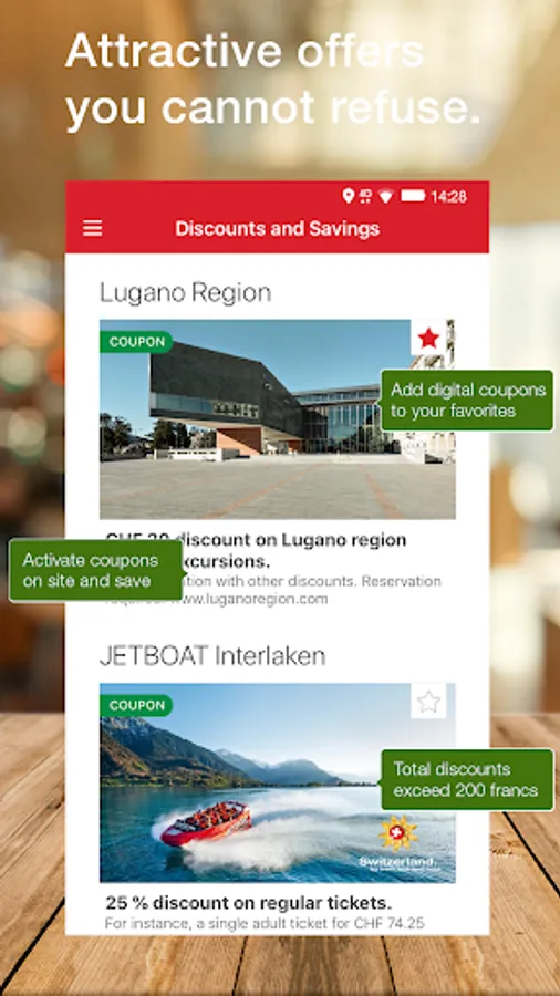 - Attractive digital coupons for restaurants, guided tours and top attractions.