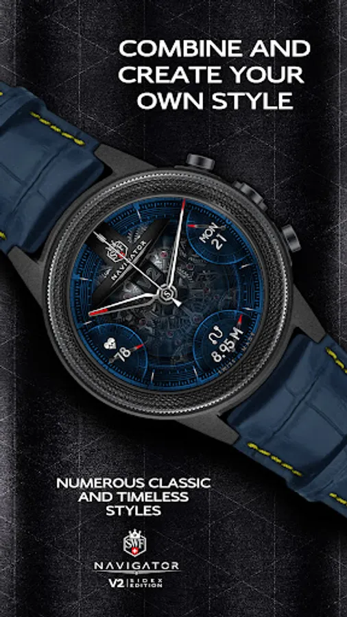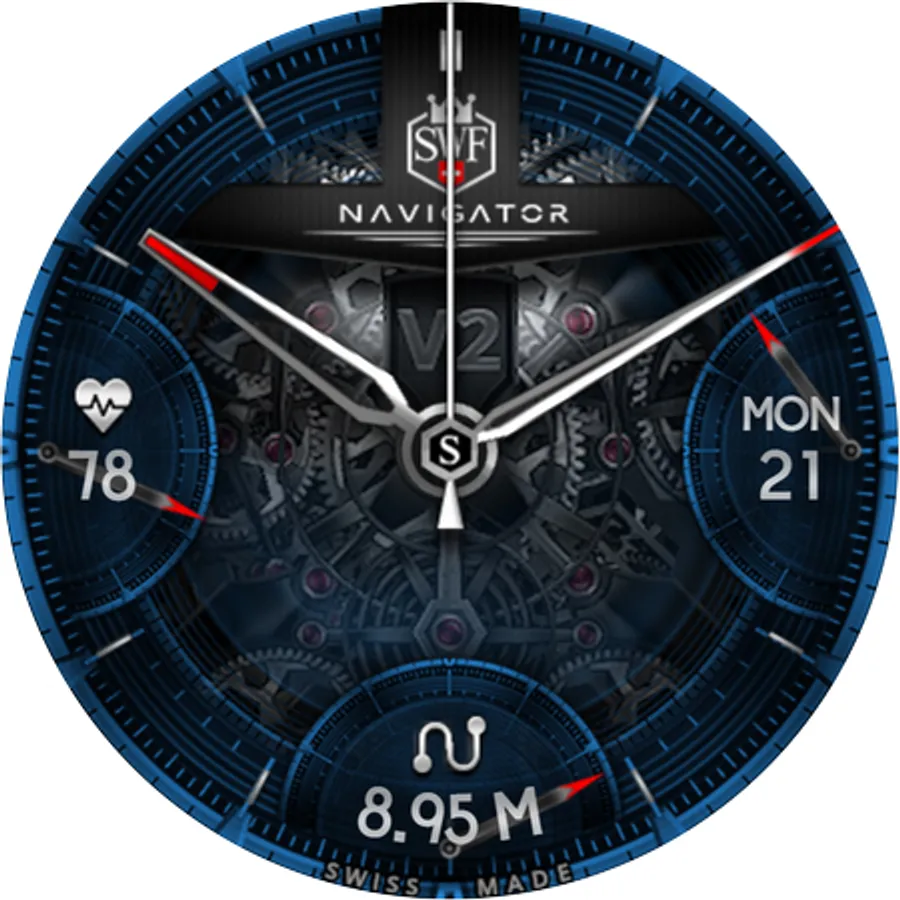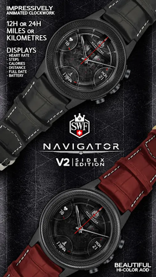 SWF Swiss Watch Faces are crafted and made in Switzerland and showing an very high grade of details. The SWF Navigator V2 contains a beautiful animated clockwork and a high color AOD watch face for your Watch, so you can leave your watch always on while you are on the go.