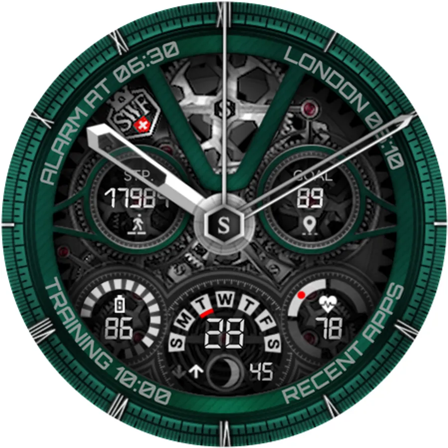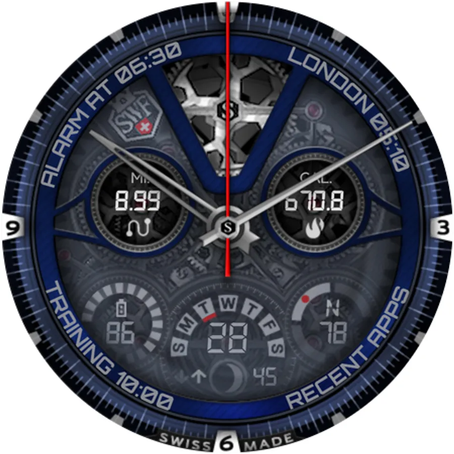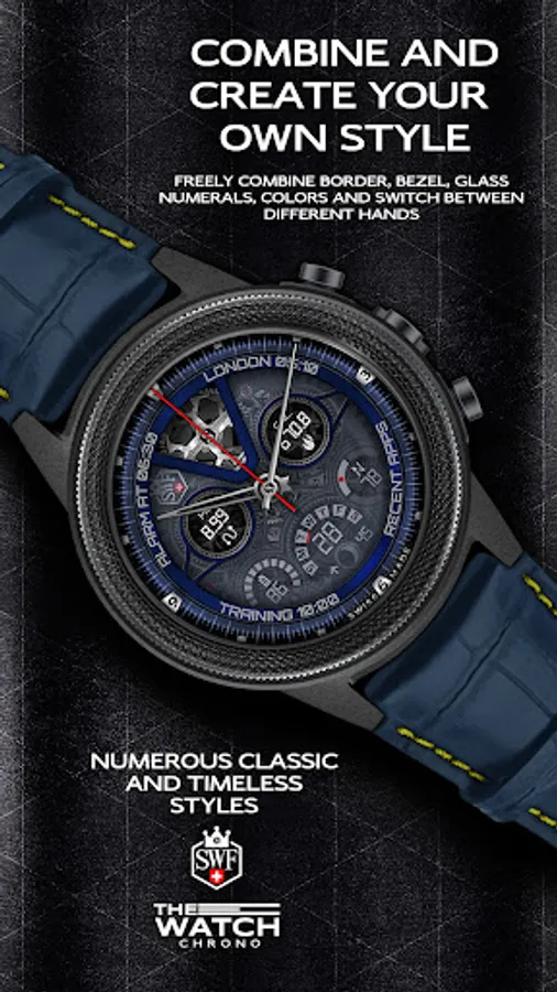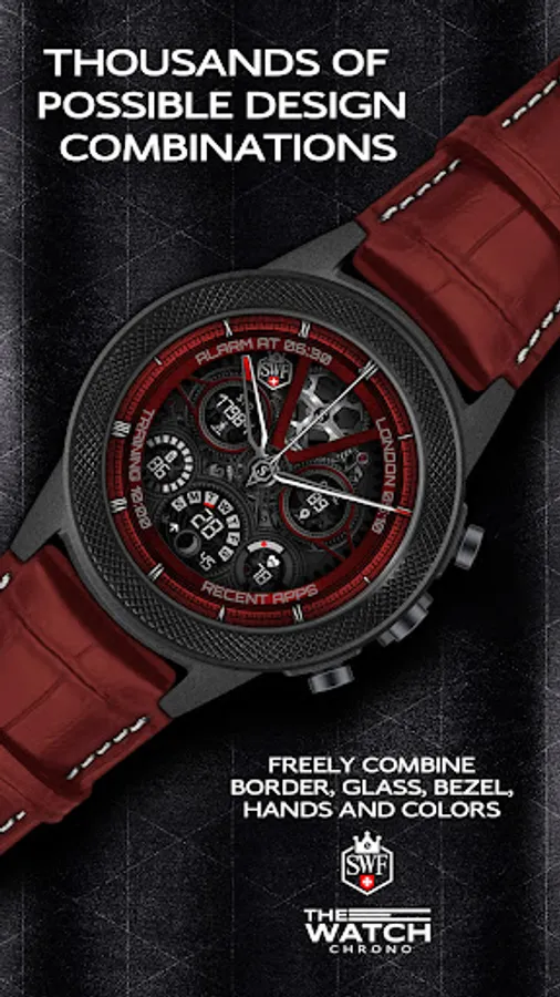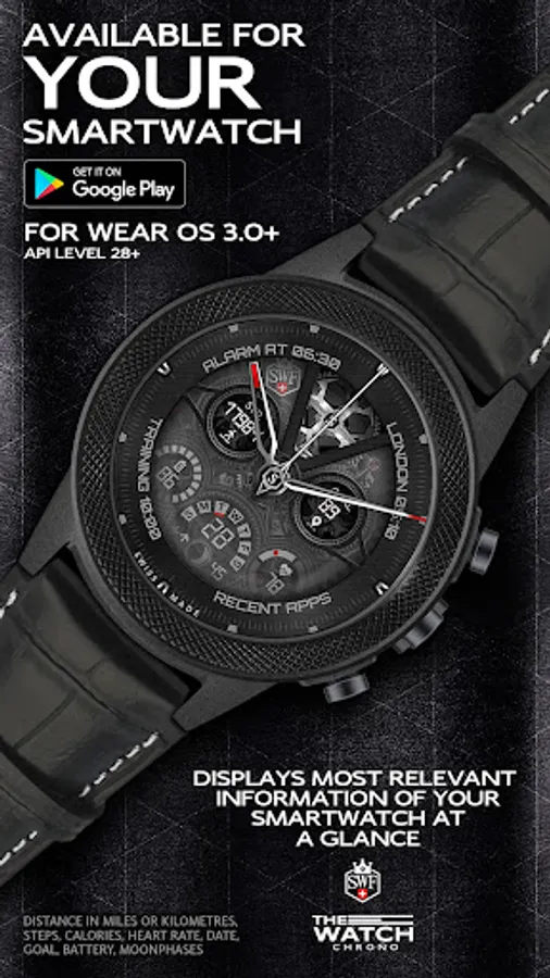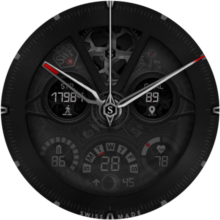 SWF Swiss Watch Faces are crafted and made in Switzerland and showing an very high grade of details. With it's clear and modern design, The chrono edition of "The Watch" from SWF is built to guide you through the time of each day. Admire the impressively animated clockwork in the background while in the foreground most smartwatch information are displayed at a glance.