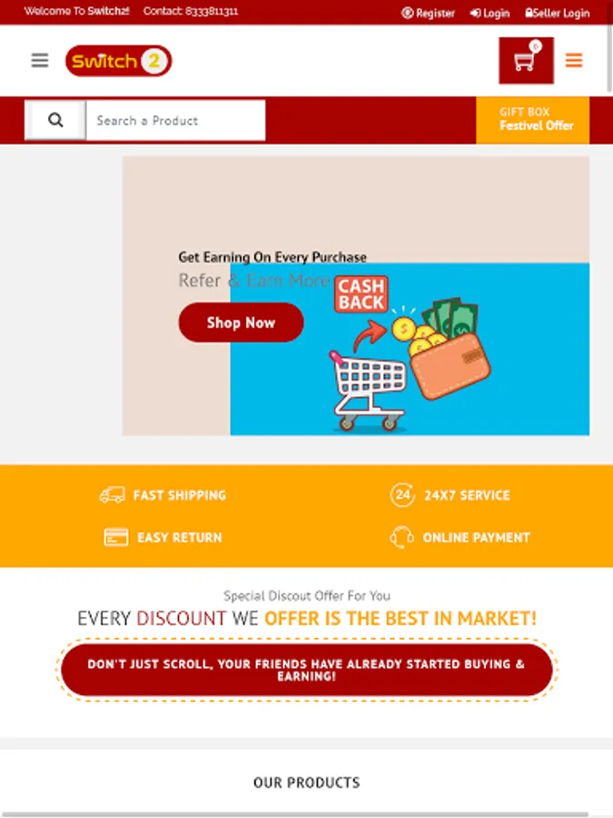 We are providing great offers in the form of discounts; We are providing a great opportunity of earning on the sales of products through them directly & even indirectly. the commission is derived from the sales of goods & not on promotion or joining.