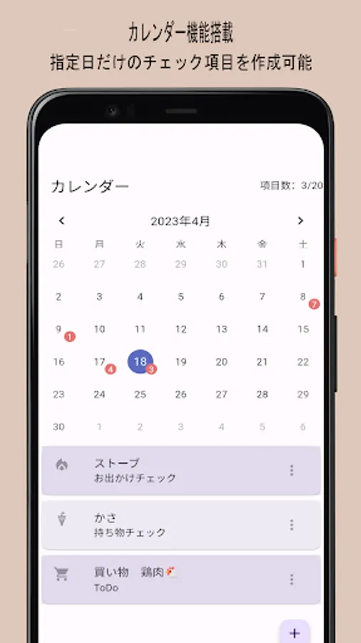 - Equipped with calendar function. You can add check items by specifying the date.