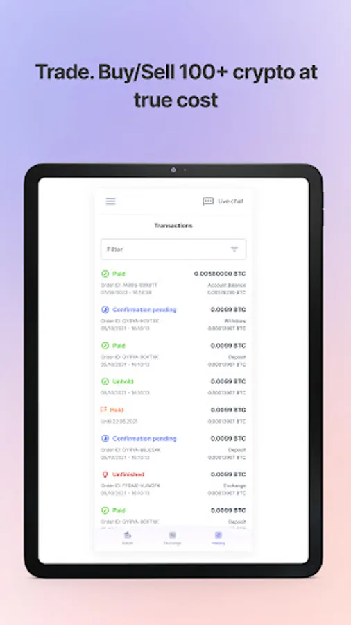Convert all popular cryptocurrencies in the fastest and most effective manner on our all-in-one crypto exchange platform. Buy crypto for fiat money or exchange crypto to crypto on our white label exchange site.
