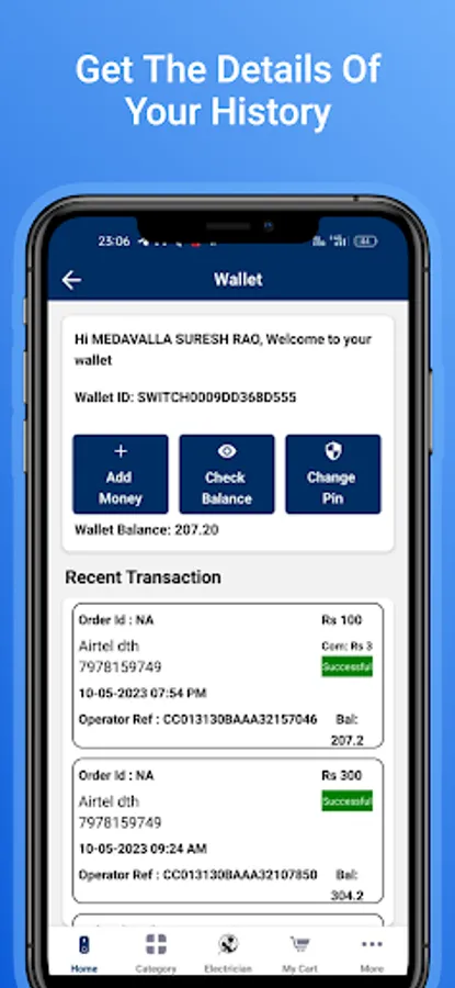 MyWallet is virtual money that you can earn through various cashback schemes, dealer margin and offers that we run from time to time. This gets stored in your MyWallet and you can use it for future recharges and bill payments from the switchstore app.