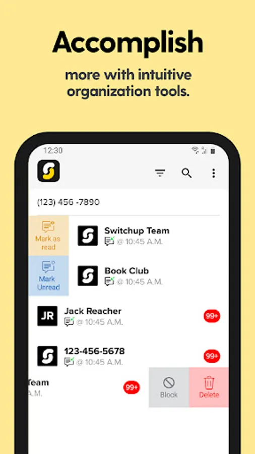 Do more with fewer phones! SwitchUp is the 2nd phone number app designed to help you conquer your professional and personal communication using one phone. With SwitchUp you get unlimited calling and texting capabilities. A 2nd line with SwitchUp helps you remove distractions and makes sure nothing falls through the cracks - every day!