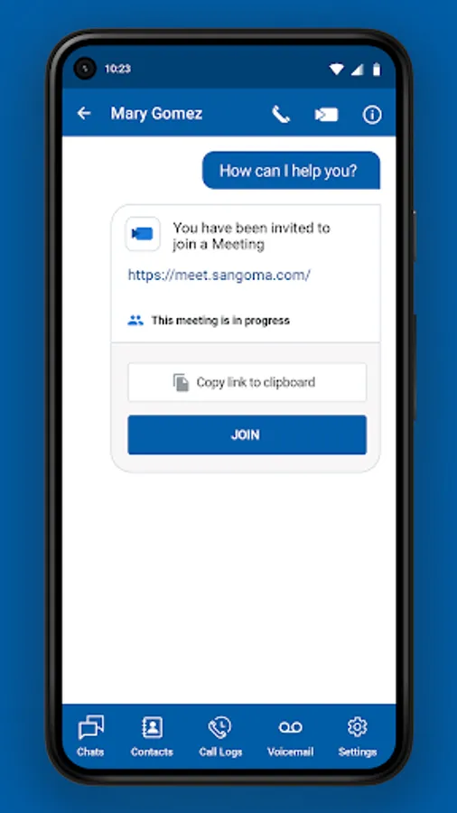 * Find your contacts and send a text or SMS message, or place a call to them using the Sangoma Talk app (formerly Sangoma Connect)