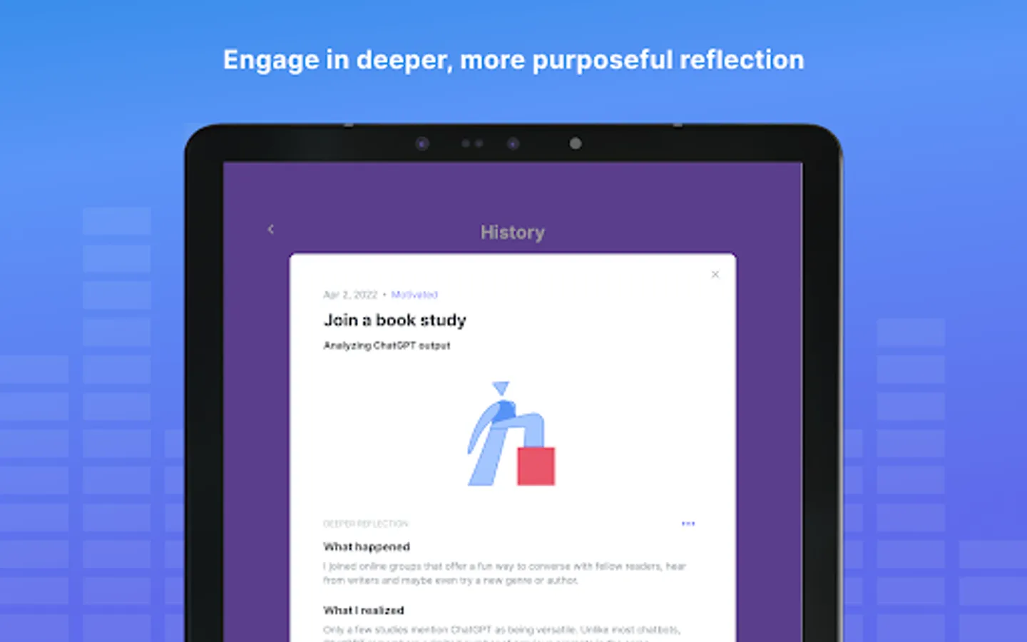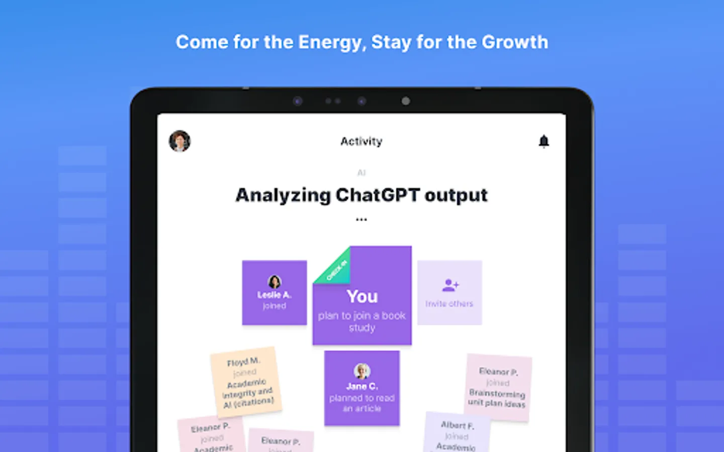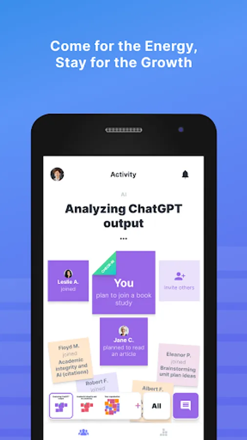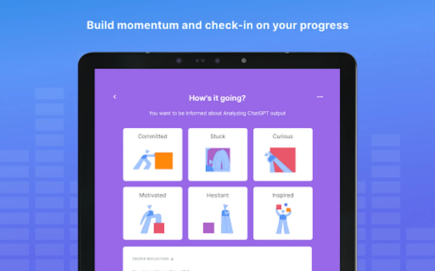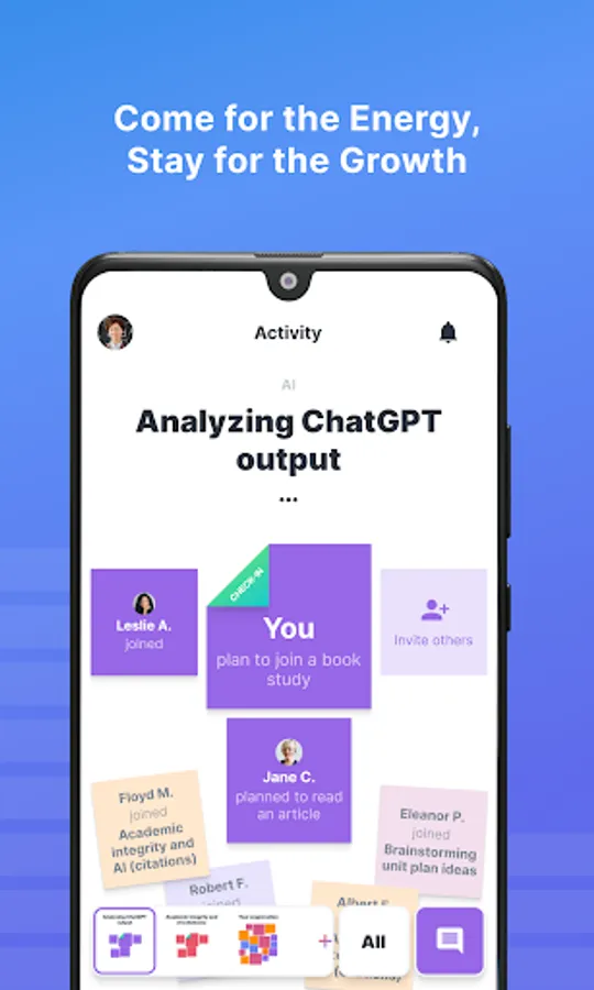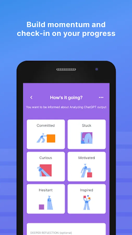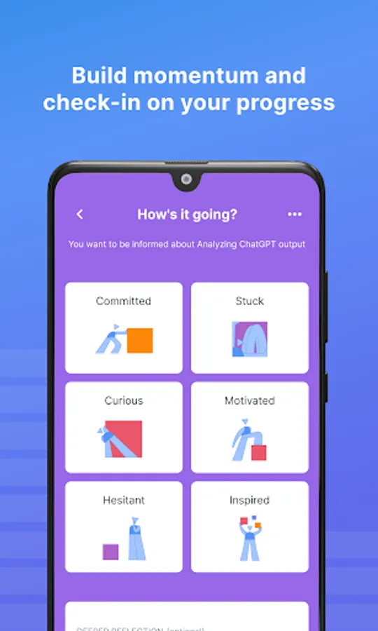 Reflectivity provides a simple, energizing way for educators to bring meta-cognition to their work. This process starts with educators identifying the topic they’re working on, and describing the state of their work. Simple check-ins and encouragement from other users motivate educators to make improvement on the topics that matter most.