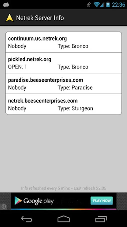 This application will display a list of known servers along with current player counts and game types. This application won't let you play Netrek, it'll just let you know when your desktop client is worth starting.