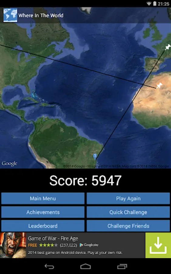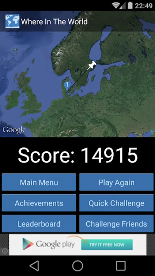 Where in the World is a game of geographic knowledge, we'll show you a location on StreetView and you have a set time to identify where in the world that place might be. Simply drop a pin on the map to make a guess and you'll get a score based on how close you were to the correct location.