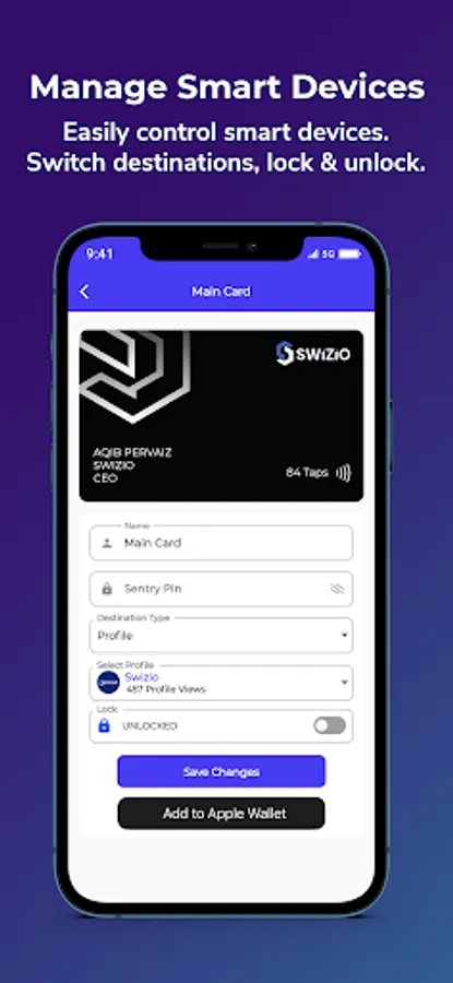 With our user-friendly & secure application, you can network like a professional. Manage your Swizio™ smart devices (smart cards & tags), switch destinations on the go, lock your device, manage your network, profiles & more.