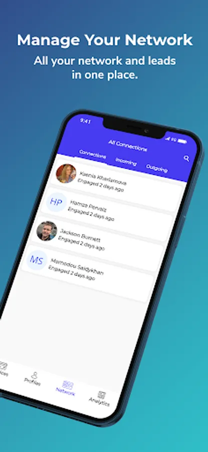 All of your network and leads are available in one place. Easily view contact information for those who have connected with you, call and e-mail them from the app, save notes and more.