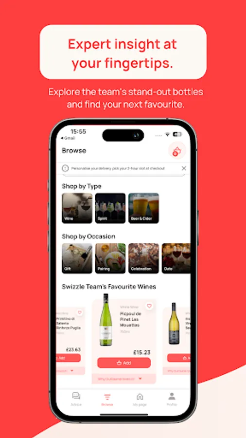 Explore our curated selection or speak with our chatbot for personalised recommendations. Add to cart, choose a delivery slot and savour your sips.