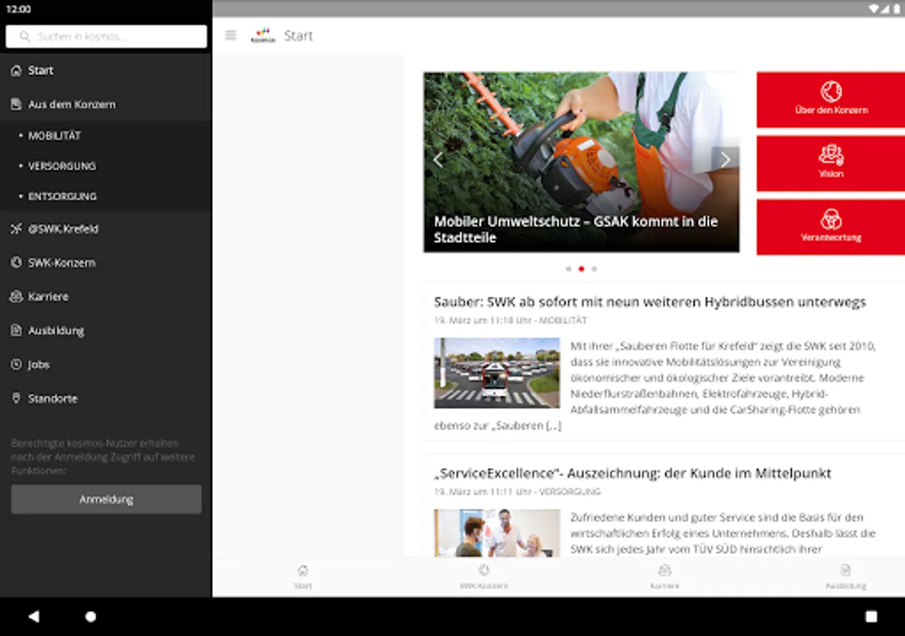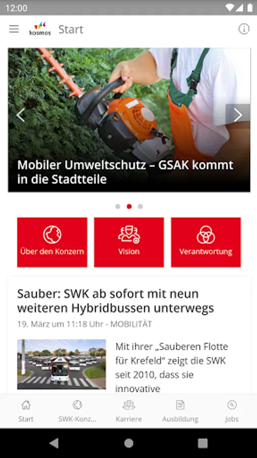 kosmos offers users the opportunity to stay informed about the latest news, interesting projects, career opportunities in the group and much more about what is happening at SWK STADTWERKE KREFELD AG - mobile, fast and to the point.