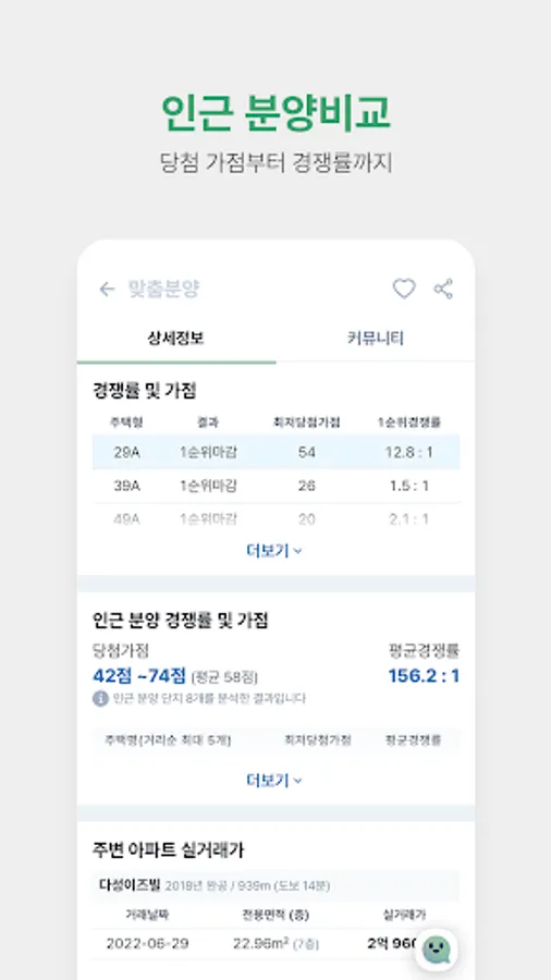 Actual transaction price of nearby complexes, average winning points, lowest winnings