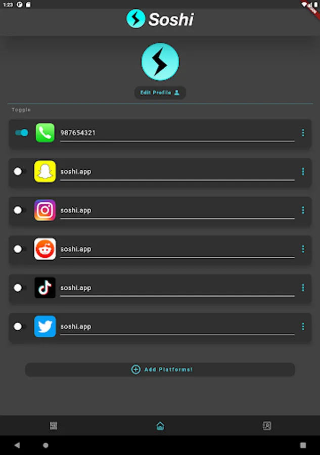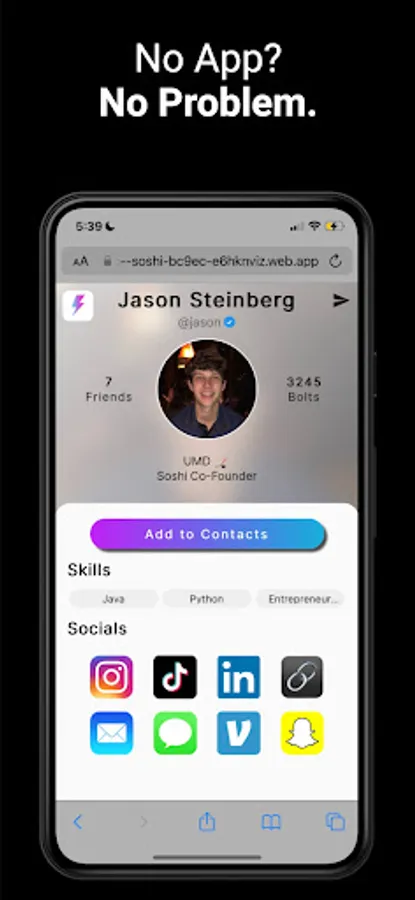 Soshi is an app that empowers you to seamlessly exchange all of your social media information in one place, with one tap!