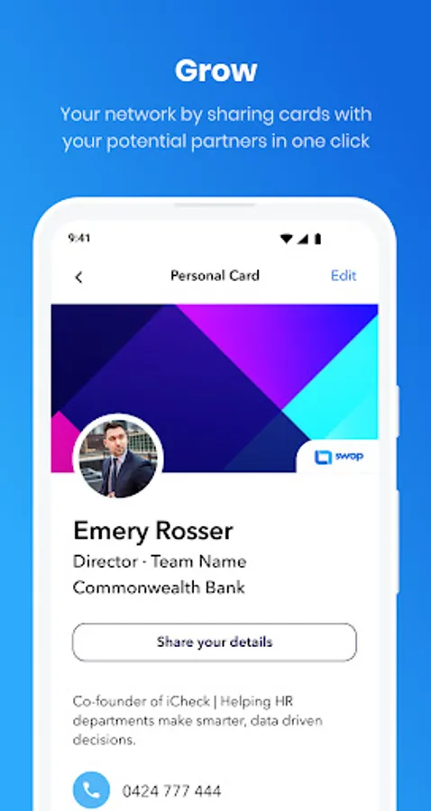 Swop is a mobile and web digital business card app designed to help people and businesses of all sizes transform their digital brand, improve sales and marketing performance, and amplify the power of their network