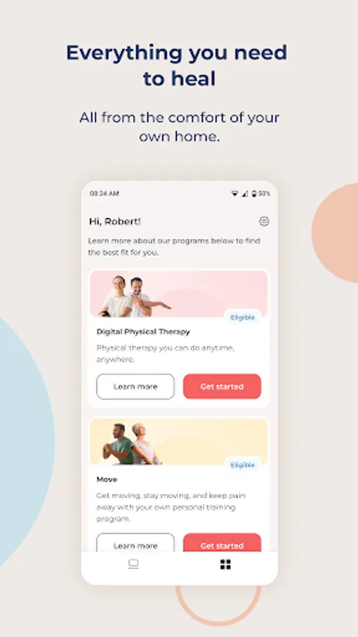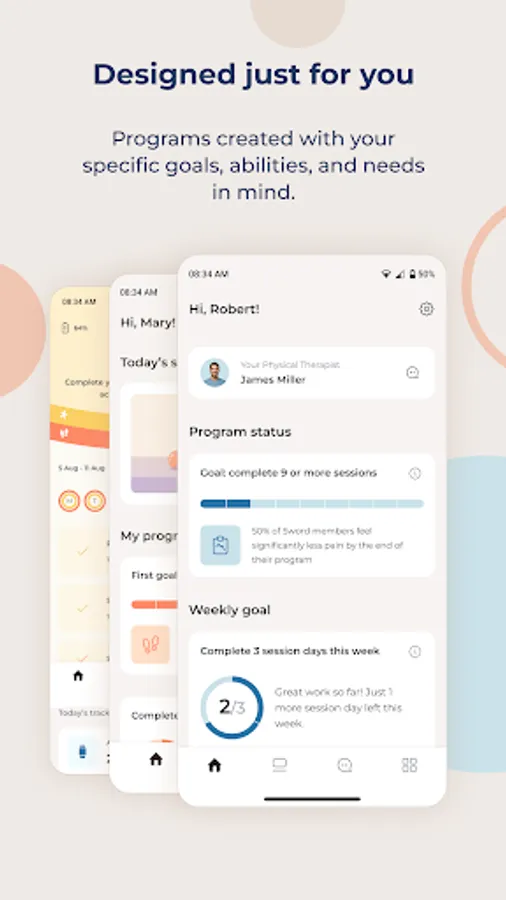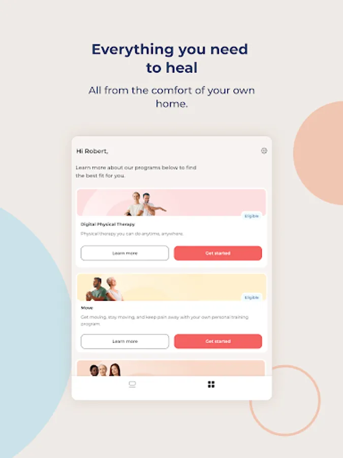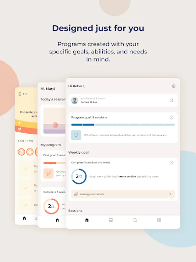 Physical therapists or clinical experts adjust your program after every session — connecting with members on average 3x per week.
