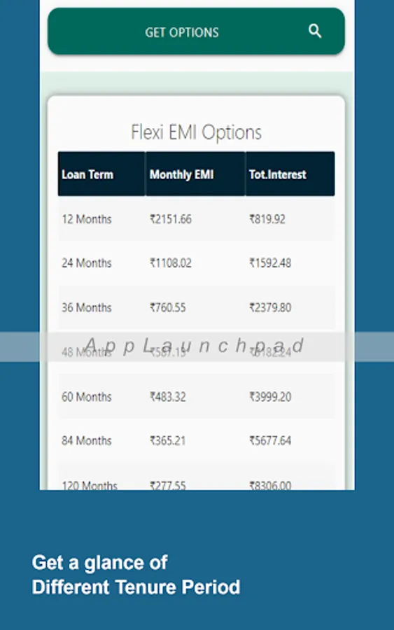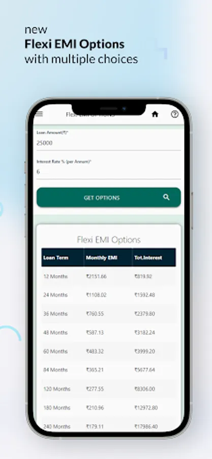 With this tool, you can find flexible EMI options for your loan amount with multiple choices of term periods.