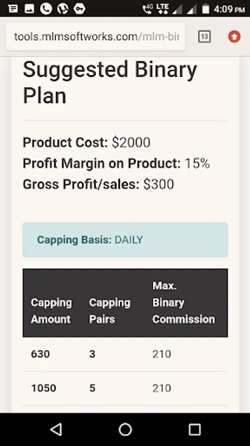 3) MLM Calculator for Binary Plan (Binary MLM Simulator)