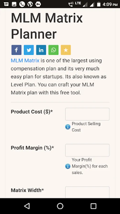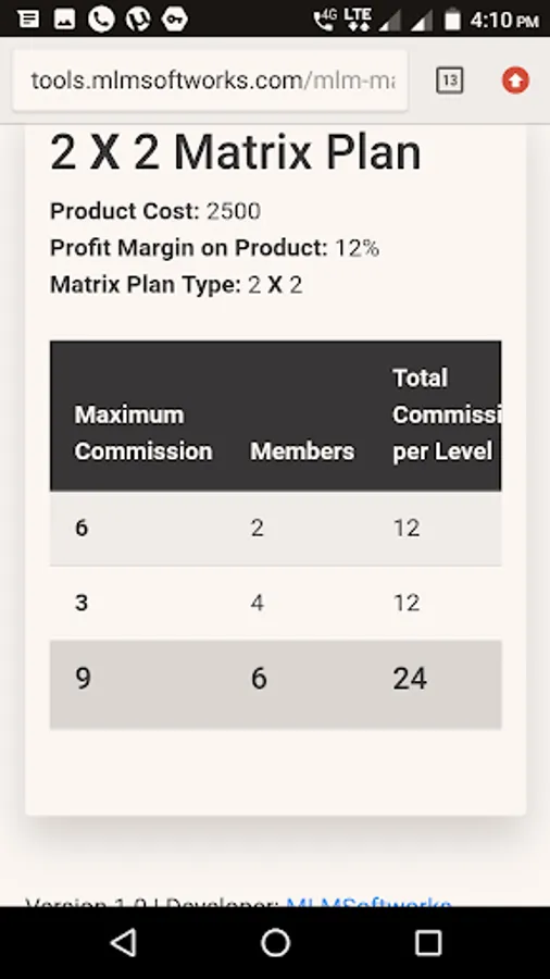4) MLM Calculator for Matrix Plan (Matrix MLM Simulator)