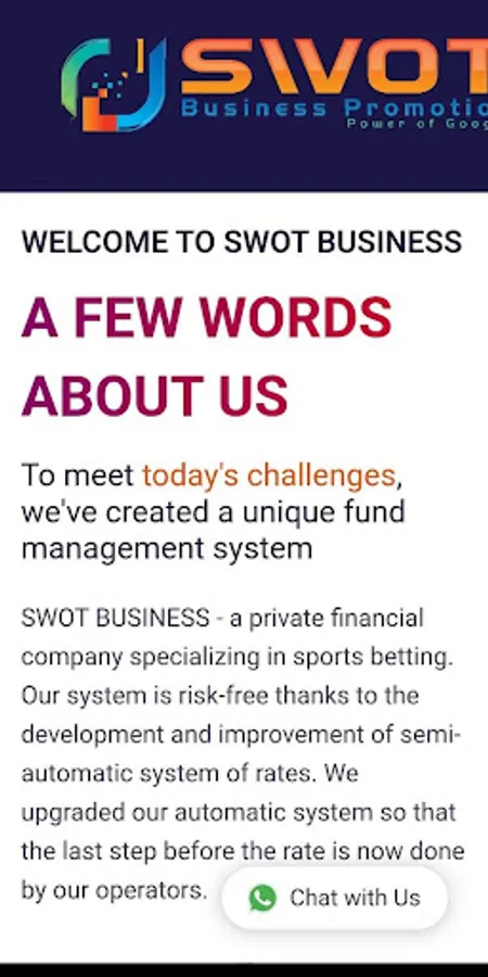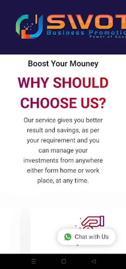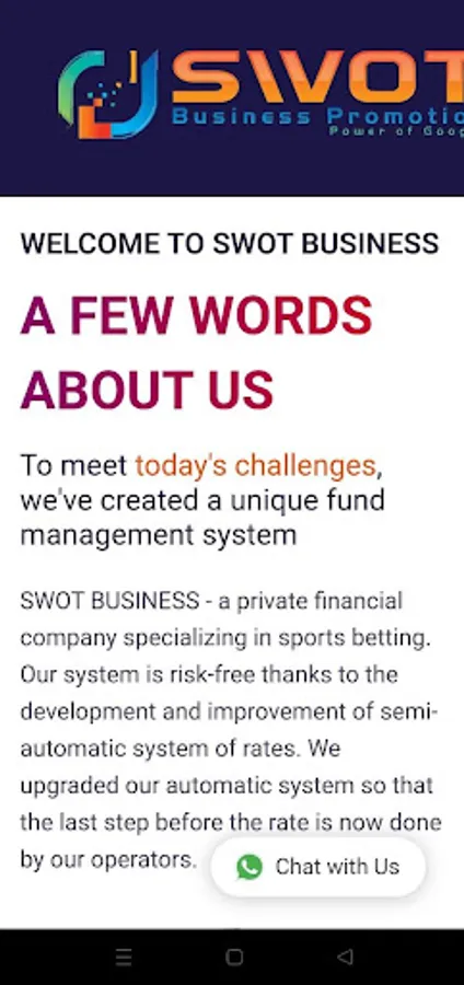Swot Business is a powerful and user-friendly mobile application designed to empower individuals with the knowledge and tools to make informed investment decisions. Whether you're a seasoned investor or just starting your investment journey, Swot Business provides you with the essential resources and features to maximize your investment potential.