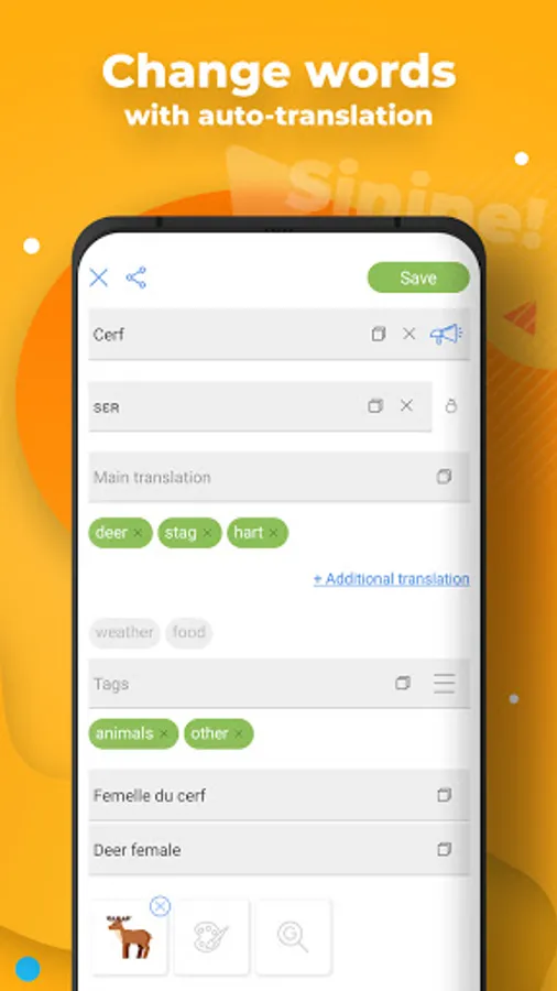 • Automatic translation when adding a word.