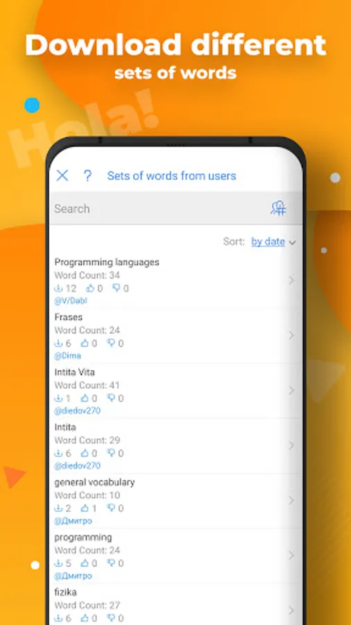 • Word sets from the server.