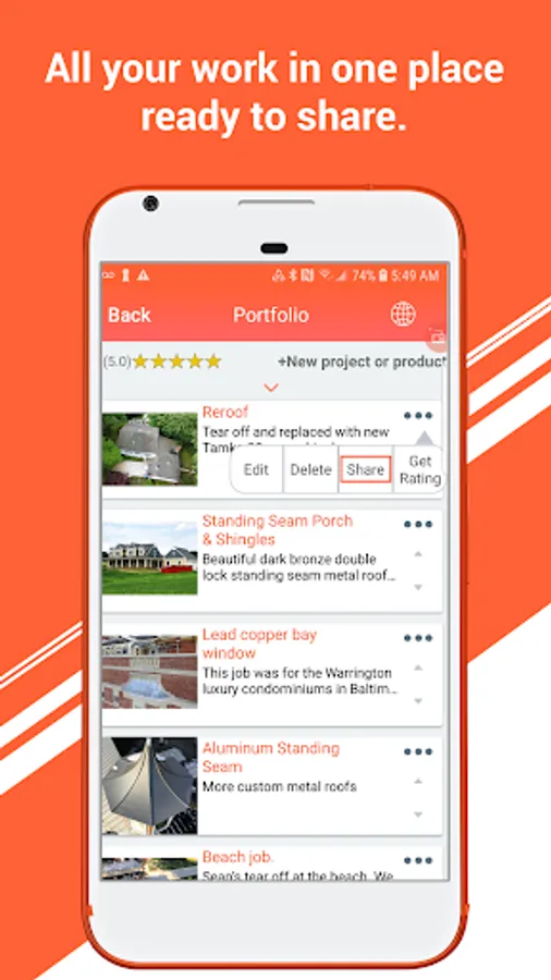 If you ever wanted an easier, cleaner way to create, store, share, and get your work rated, then Contractor's Work is the place to go! We are also building the biggest directory for the construction industry and no contractor will ever have to pay for leads or percentages of the jobs they get! Our commitment is truly for the hardworking man and woman and it is because the creator of the application himself is a roofer from Pennsylvania and truly understands what hard work feels in your bones and body after going strong for over 20 years installing all types of roofs.
