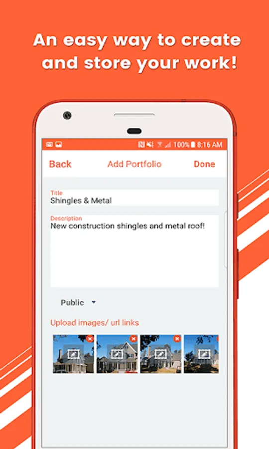 Contractor’s Work comes with a clean design and the interface is user friendly. Once you open this construction app for the first time, you get to create a profile and set up your portfolio(s) to share your work and experiences.