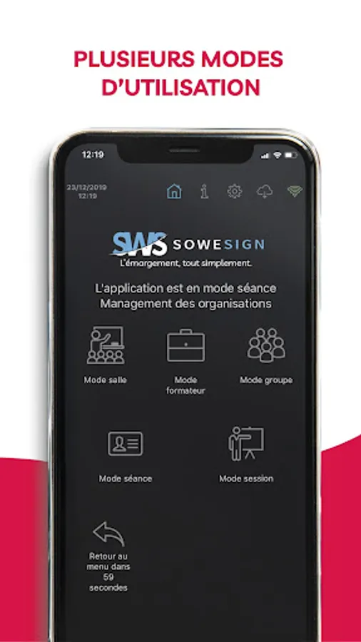 The use of this application requires a subscription to the SoWeSign solution (formerly JeSuisEnCours) which provides you with the startup codes necessary for the application.