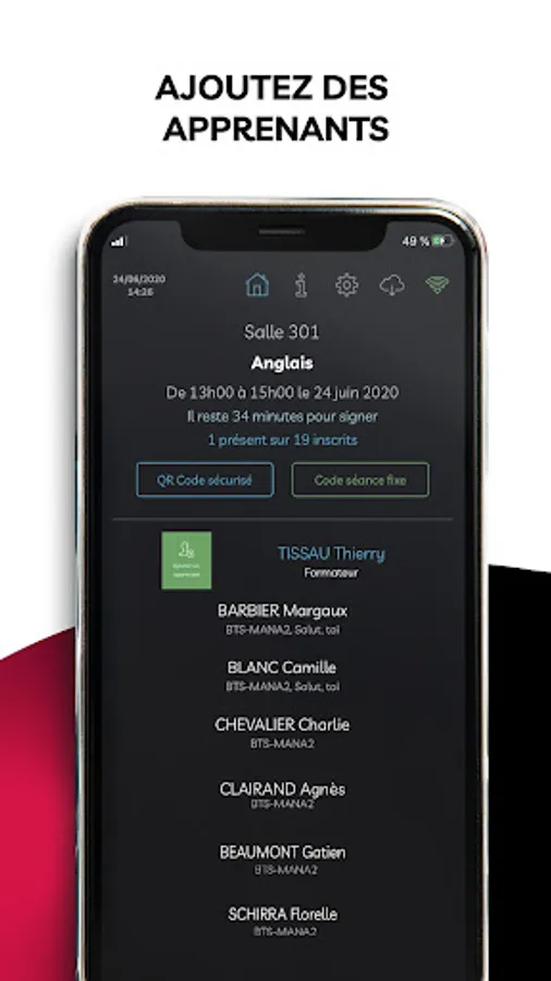 Digital sign-in application for schools, CFA, universities, training organizations and companies, in accordance with French, Spanish and European regulations in the context of initial, continuing, apprenticeship and work-study training.
