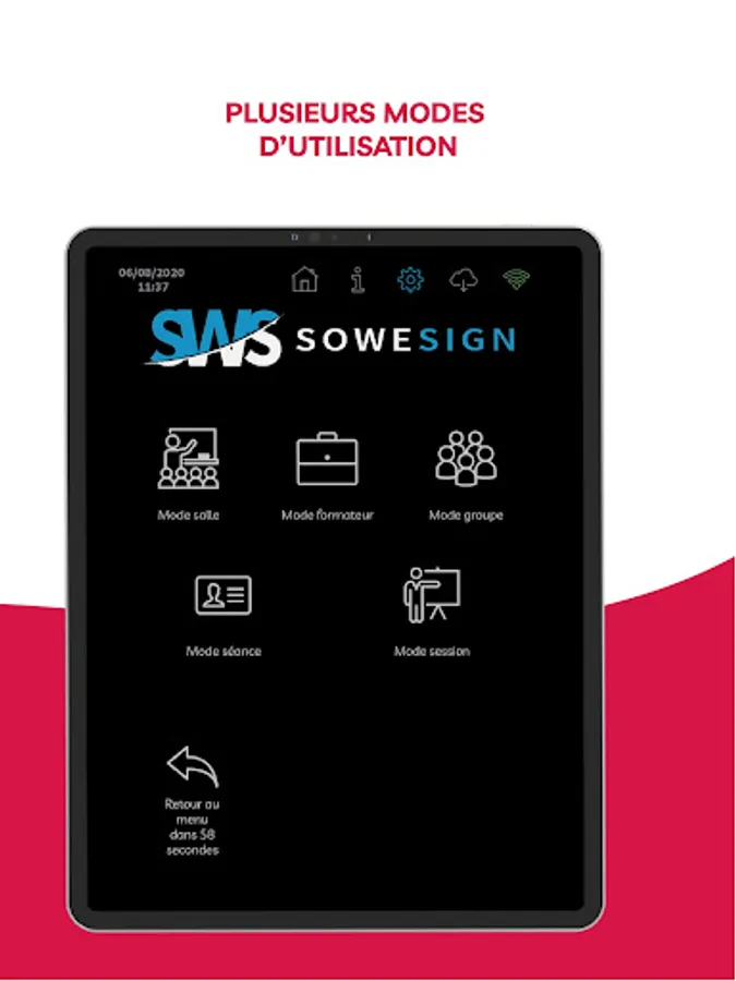The generic signature application SoWeSign can be used in room, trainer, group, session or session mode: it allows the collection of signatures in online or offline mode (without Internet), for attendance monitoring and generation of attendance sheets, achievement certificates or attendance certificates from the online Manager at the end of training or the billing period.
