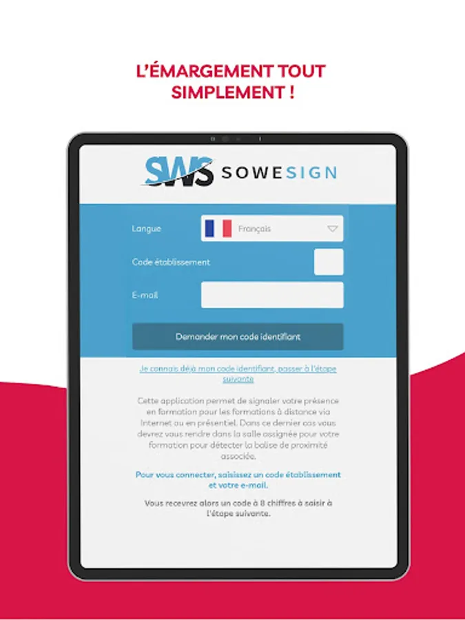 Use of this application requires a subscription to the SoWeSign solution which provides the identification code necessary to start the application.