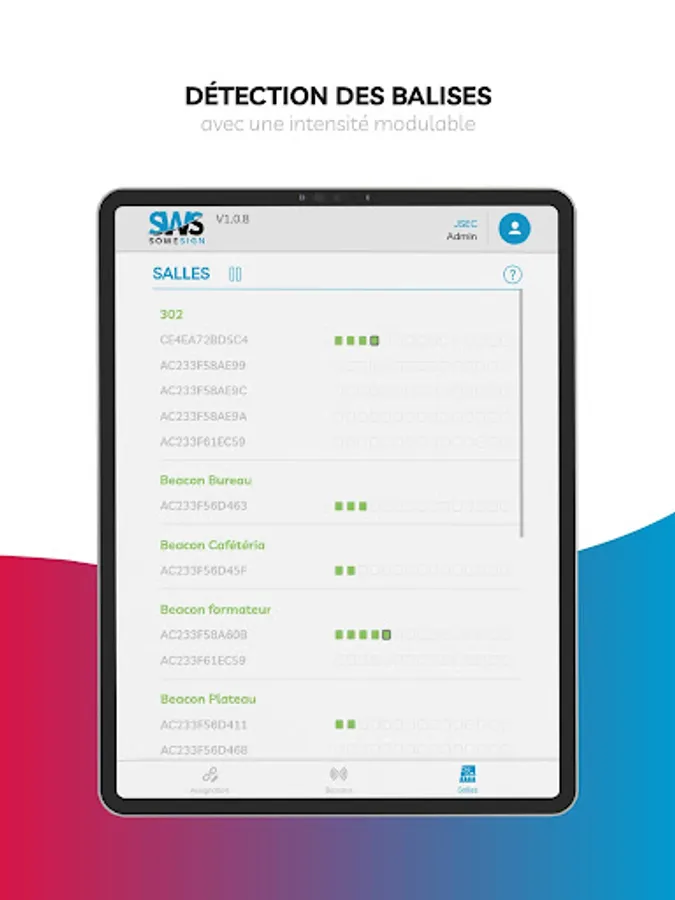 SWS Technician is the SoWeSign proximity tag setup application that allows participants to sign on their own device through the SWS Student application. The beacons guarantee attendance in training places equipped with proximity tags, and without any physical location of individuals, while respecting privacy and GDPR obligations.