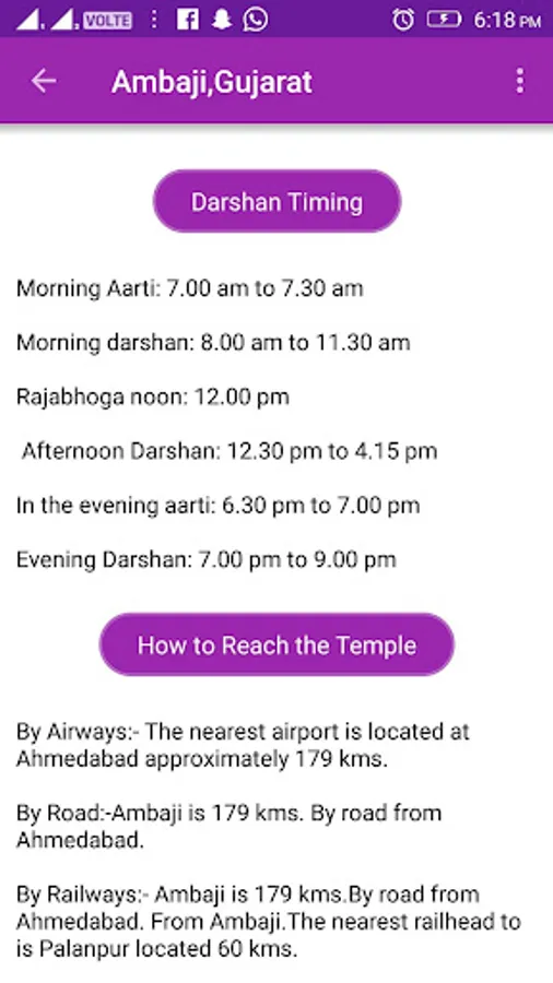 - Darshan timings of particular Temple