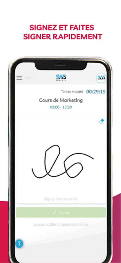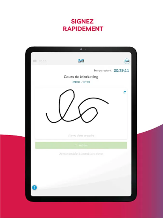 Participants will then be able to flash the QR Code from the Student application in order to access the signature interface and sign in to indicate their presence.