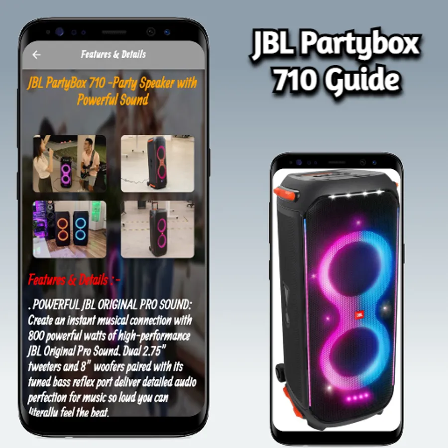 JBL Partybox 710 Guide is an application that provides you with many ideas on how to use the JBL Partybox 710 by providing a user guide for the JBL Partybox 710, which you can view in a clear and easy way, and you can also access many of the features of the Guide through the JBL Partybox application 710 Guide K. POWERFUL JBL ORIGINAL PRO SOUND: Create an instant musical connection with 800 watts of high-performance JBL Original Pro sound. Dual 2.75" woofers and 8" tweeters paired with a tuned bass reflex port deliver perfect, detailed music so you can feel the notes.