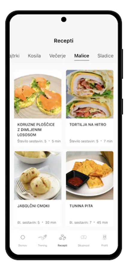 - lažji in težji programi (doma in v fitnesu)