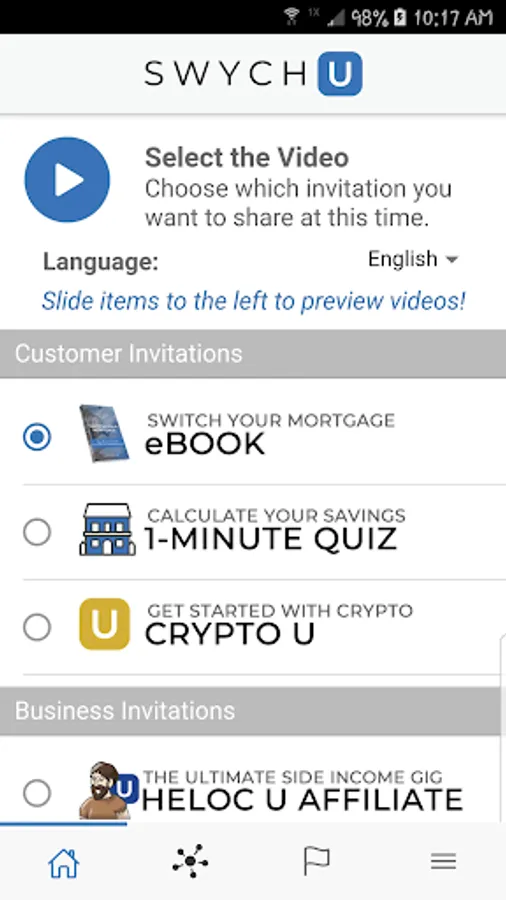 Experience the power of true financial education. Switch your thinking... switch your mindset... switch your financial destiny... switch you! SWYCH U delivers high value educational courses designed to help you take control of your finances. The mobile business building application for SWYCH U Affiliates offers advanced Prospect Invitation, Social Publishing, Prospect Management, Team Management, Notification tracking, Account management tools and more, designed to help you quickly expand your results and success. The powerful yet intuitive design provides a highly duplicatable system anyone can use!