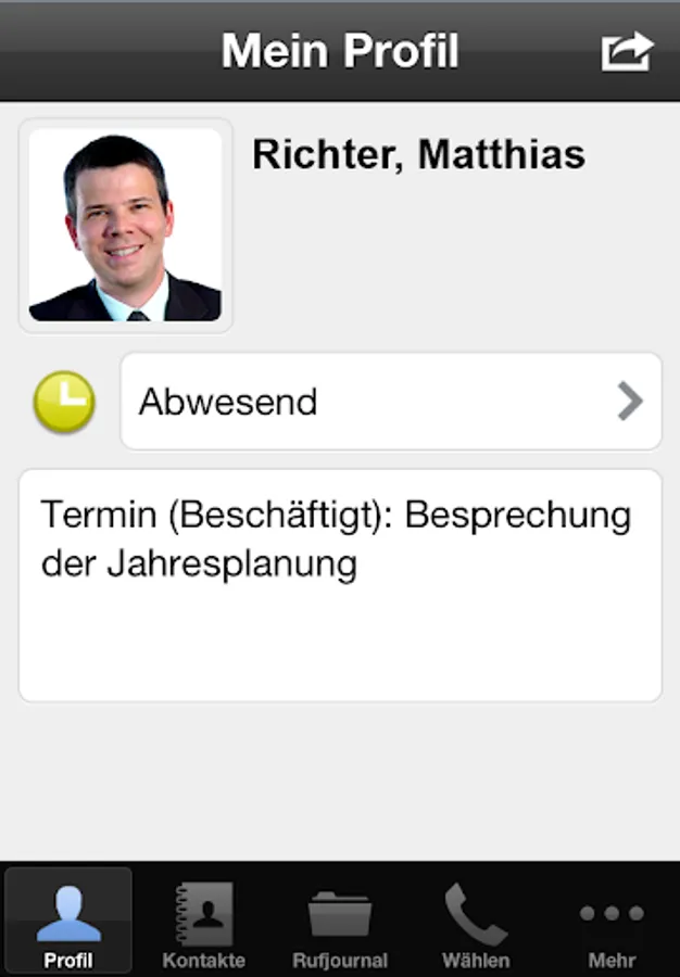 Within the global contacts in Netphone Mobile, the current status ("Available ", "Logged off", "Speaking", "Away" or "Do not disturb") is shown for every Octopus Netphone user in your company. Since it is possible to present the global phonebooks of multiple NetphoneServer in a unified form, cross-server status signaling is achieved.