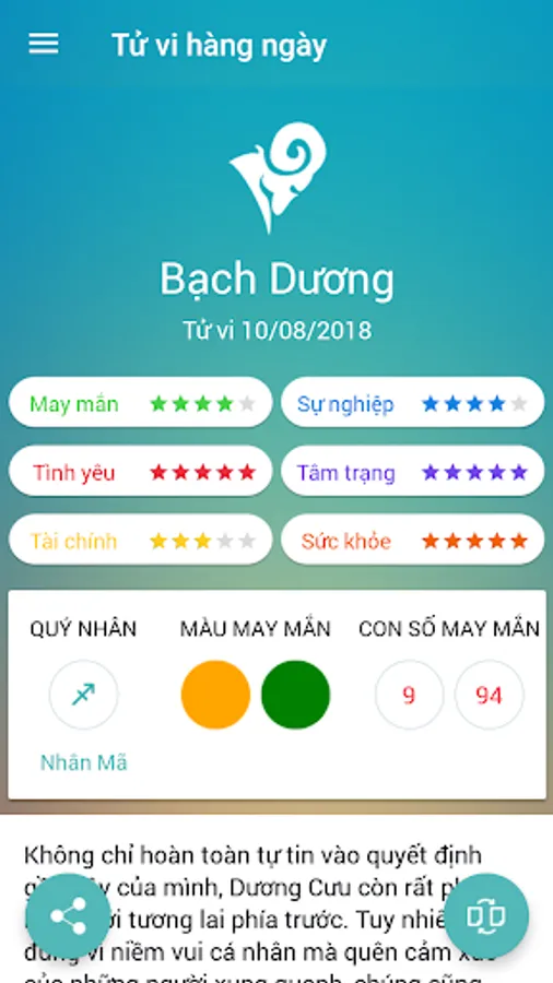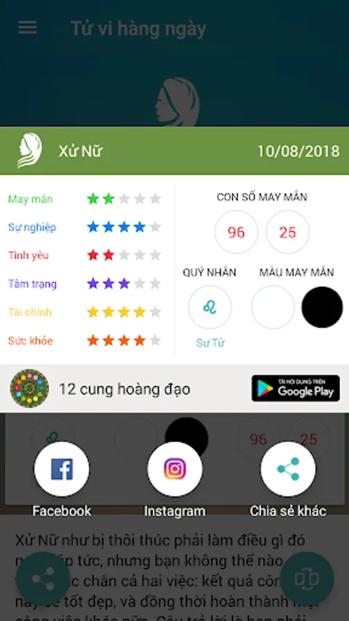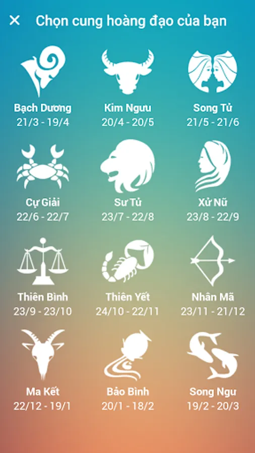 Các chức năng chính của ứng dụng Tử Vi 12 Chòm Sao: