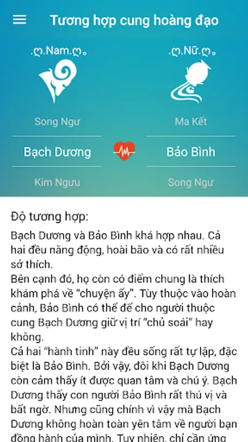 ● Đo độ tương hợp của bạn với 12 chòm sao.