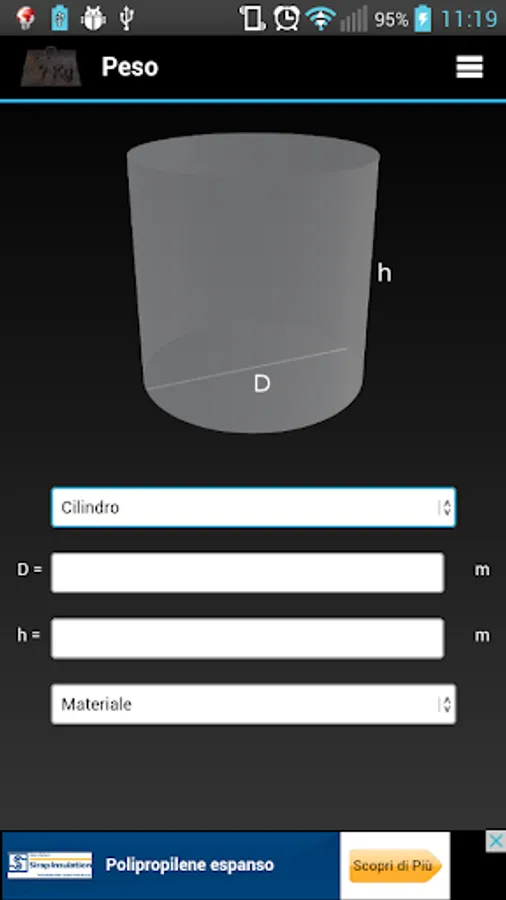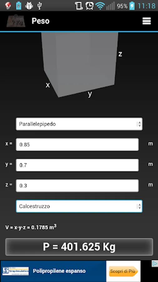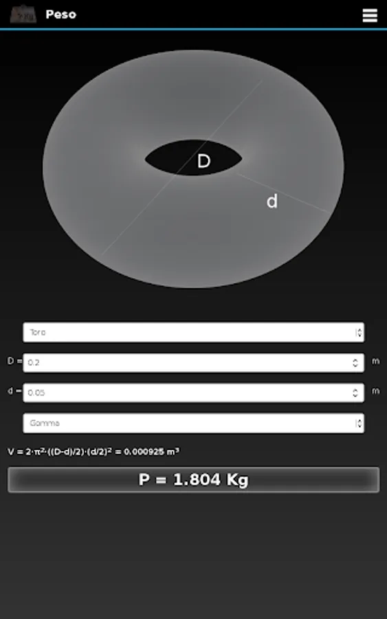 Calculate the weight of several elementary solids, choose the shape, type the size, and select the material, will tell you the volume and weight.