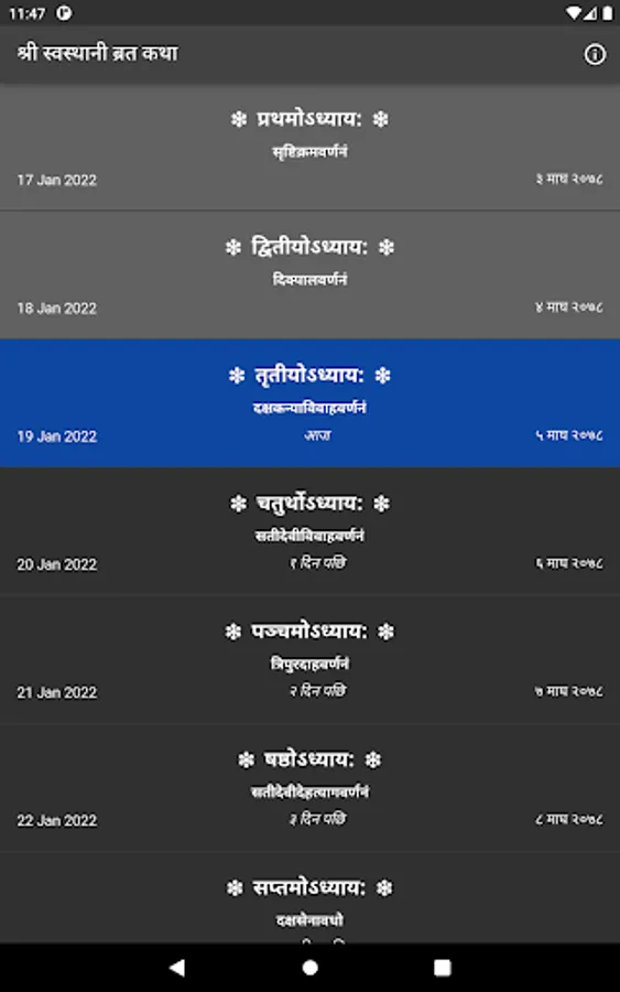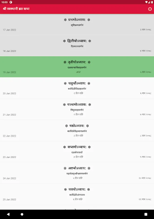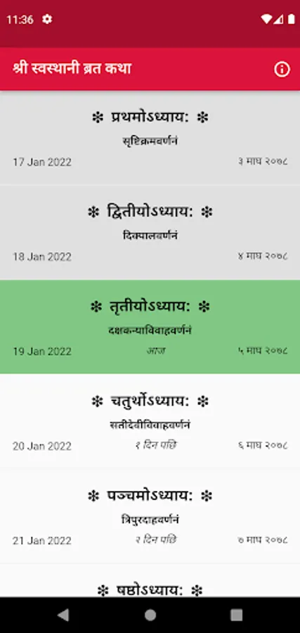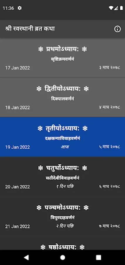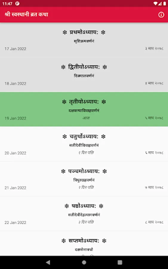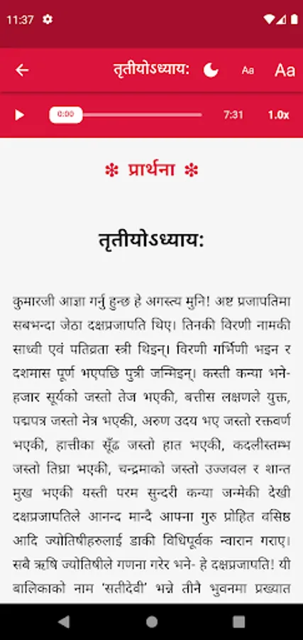 Shree Swasthani Brata Katha is an amazing way to hear and read the Swasthani stories on your smartphone or tablet. This app consists of the whole text from the sacred book along with a mellow voice reading out the stories. You can scroll through the chapters as the month long reading festival progresses. Swasthani Brata Katha is an app designed for all Nepalese around the world who miss and wish to reminisce in the age old stories that we listened to growing up. Shree Swasthani Brata Katha is the new way to pass our culture and traditions on to the tech generation.