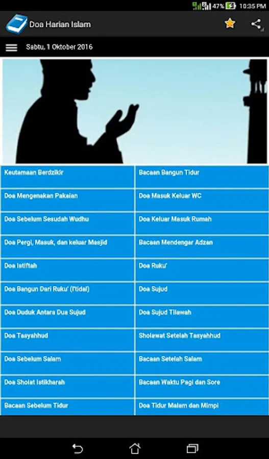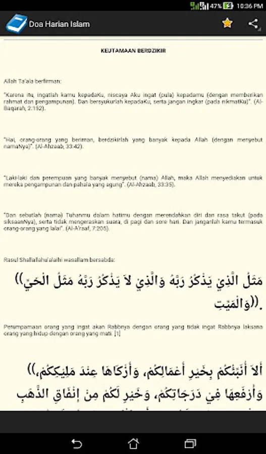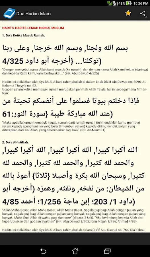 This app comes from the book "Muslim Hishnul min Adzkaril kitabi Was Sunnah" compiled by Sa'id bin 'Ali bin Al-Qahthani Wahf which contains a collection of Prayer, Recitation, Wirid everyday that are considered important for Muslims to memorize and practice it.