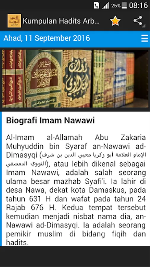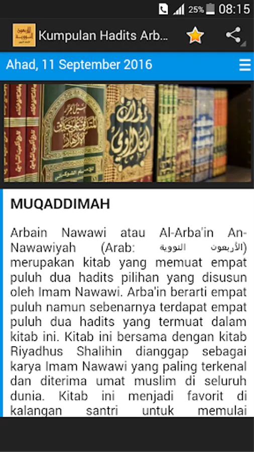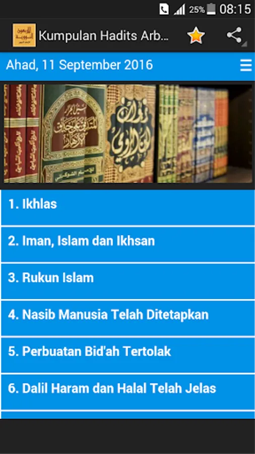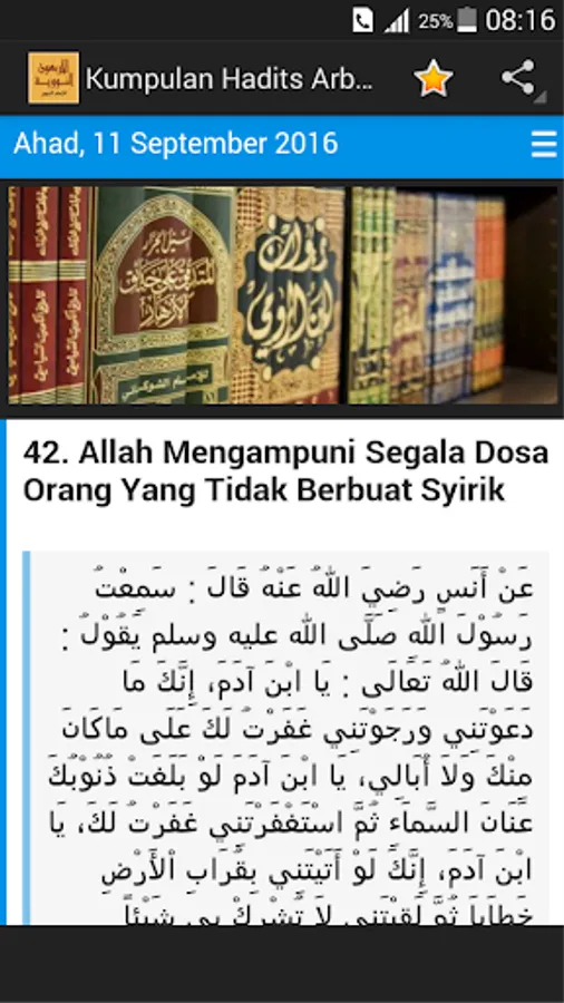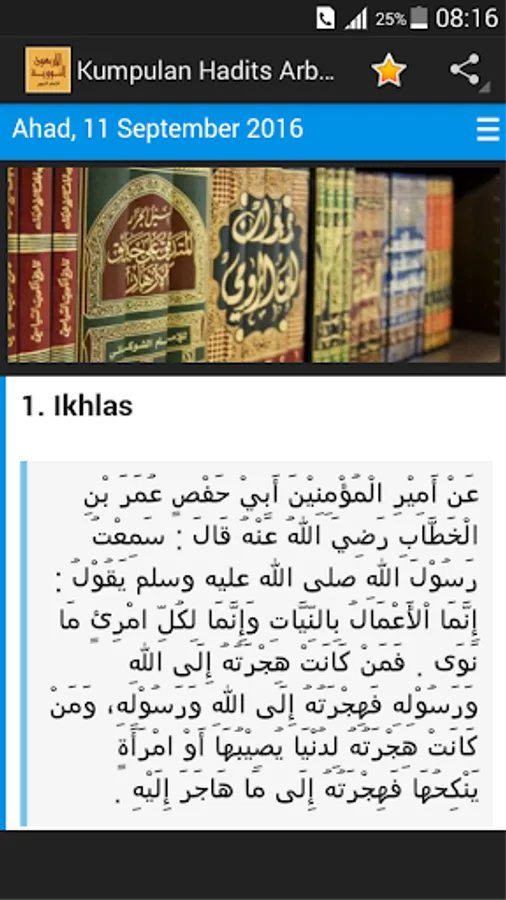 This hadith Imam Nawawi's Forty Hadith you can read one day and one hadith. Hopefully this Hadith useful set of applications for you.
